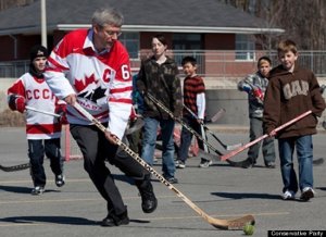 While doing research on hockey and Canadian masculinity I read an article by Jay Scherer and Lisa McDermott, from the University of Alberta, titled “Playing promotional politics: Mythologizing hockey and manufacturing “ordinary” Canadians.” In the article the authors argue that Canada’s conservative government has used our beloved sport of hockey to redefine Canadian citizenship and identity in order to achieve a particular brand of Canadianness. They outline how the Conservative Party (CP) conjured up a strategy that