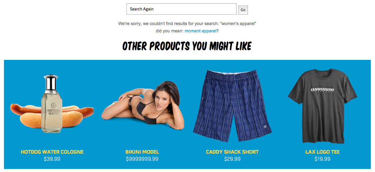 After a little more digging, it wasn’t hard to find more Warrior gems. This appears when you search “women’s apparel”: