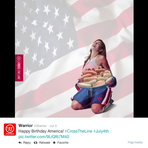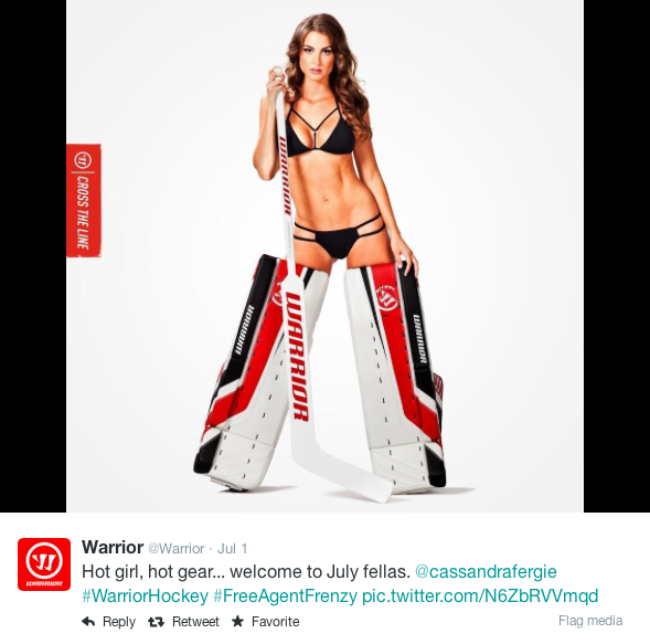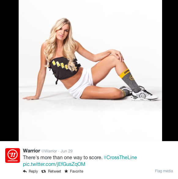 #Seriously? Warrior has clearly tapped into the shallow well of “sex sells”. But #CrossTheLine and “there’s more than one way to score” is crossing over from the land of generic objectification to overt promotion of rape culture. It’s not clever. It’s not provocative. It’s just plain misogynistic. But wait there’s more! Just last week Warrior tweeted out this comment: