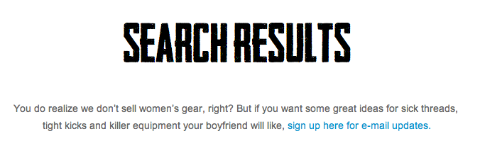 Funny thing is that Warrior does serve “that” demographic, just not with women’s specific clothing or equipment. And if you search “women’s,” this is what comes up: