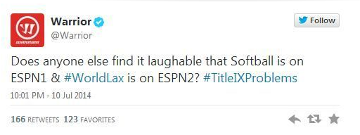 UPDATE: As of February 13, 2015, Warrior has removed the sexist screen shots shown above. I thought this was a good sign…until they posted this video advertising their lacrosse gloves: