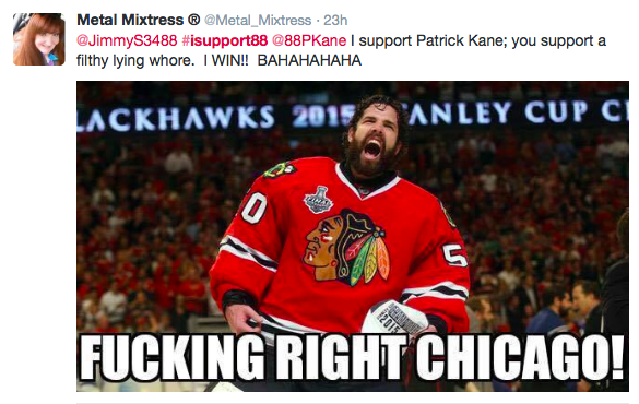 Problem B: Notice how many of these tweets are from women? Perhaps, this should not be surprising since the Blackhawks have one of the biggest female fan bases in the NHL but if rape (alleged or otherwise) cannot bring together women from all walks of life there is little hope for any kind of meaningful women’s movement. Sadly, rape culture is equally perpetuated by both men and women. Is it any wonder that the majority of rape cases go unreported, or take years to come out (#billcosby) for fear that no one will believe them? Yes, some women lie about rape but lying is not a gendered phenomenon, which means that we should treat men with equal suspicion when such allegations occur. Shouldn’t we?