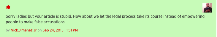 It would seem a logical extension of this conversation to ask what if [he] had murdered [someone]? … But, really, what this question does is demean the value of women and rape because the real question is – why aren’t allegations and charges of rape bad enough to warrant the same kind of fear, criticism, and disdain that a mere accusation of murder or child molestation can create.