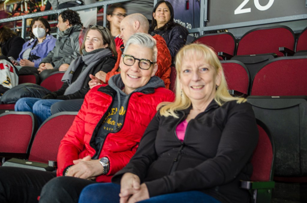 Maggie, Jocelyne, and Pauline have been hockey fans for some 40’ish years. They are all Ottawa PWHL fans but also named the likes of Spooner and Nurse as their favourite players, along with Maschmeyer and Clark. When I asked them what the PWHL means to them their responses were: “Should I start crying now?” and “It’s about time!” Pauline also mentioned how proud they were when they figured out how to put YouTube on their TVs so that they could watch all of the games. When I asked what the league could do to support their generation of fans, Maggie mentioned overhearing folks talking about how hard it is for those who aren’t technologically savvy to get tickets and watch the games. The three of them all commented how nervous they were about having the tickets on their phones, wondering if they would work when they got to the door. They also brought up how the cashless systems in arenas can be difficult for older folks who prefer not to carry a credit card with them. As for the hockey itself, they love it! But Maggie would prefer if the same player isn’t allowed take multiple shootout attempts because — it’s a team sport!